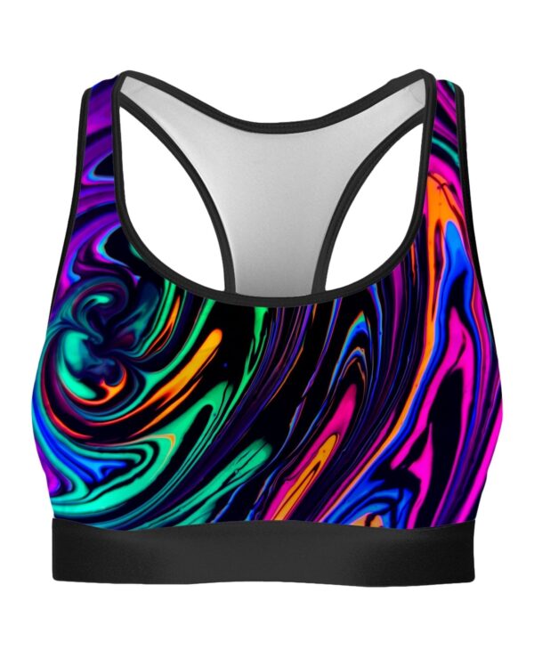 All items are made with sublimation print, a technique that allows us to deliver the most unreal, vivid graphic visuals throughout the sports bra!