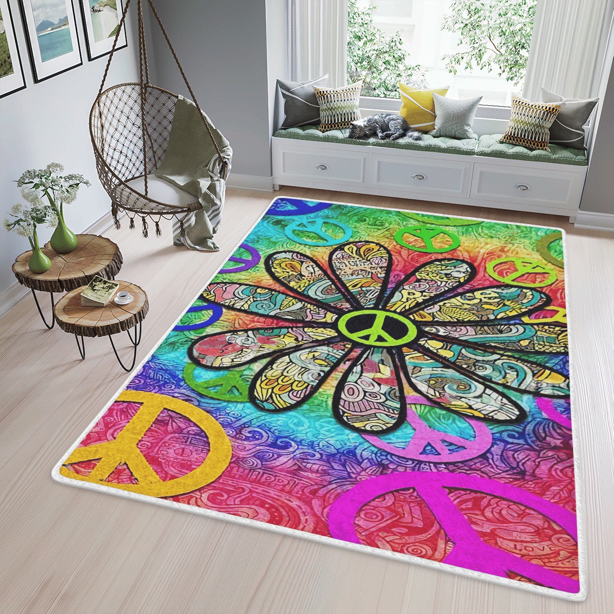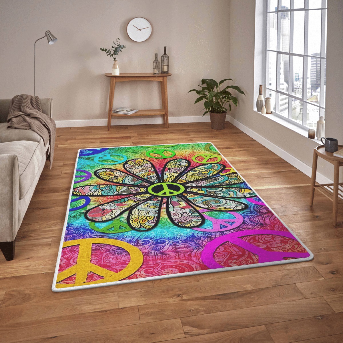 Hippie Peace Sign Area Rectangle Rug Home Decor, Cheap Home Depot Area Rugs 003