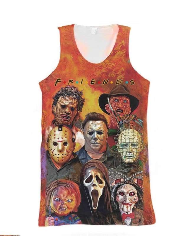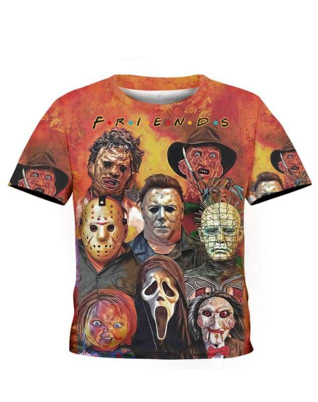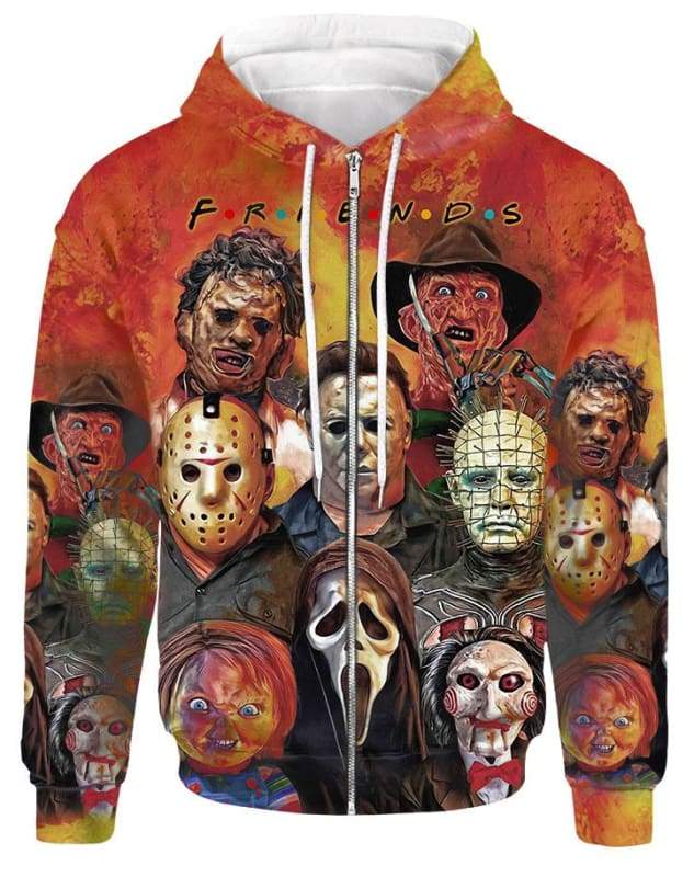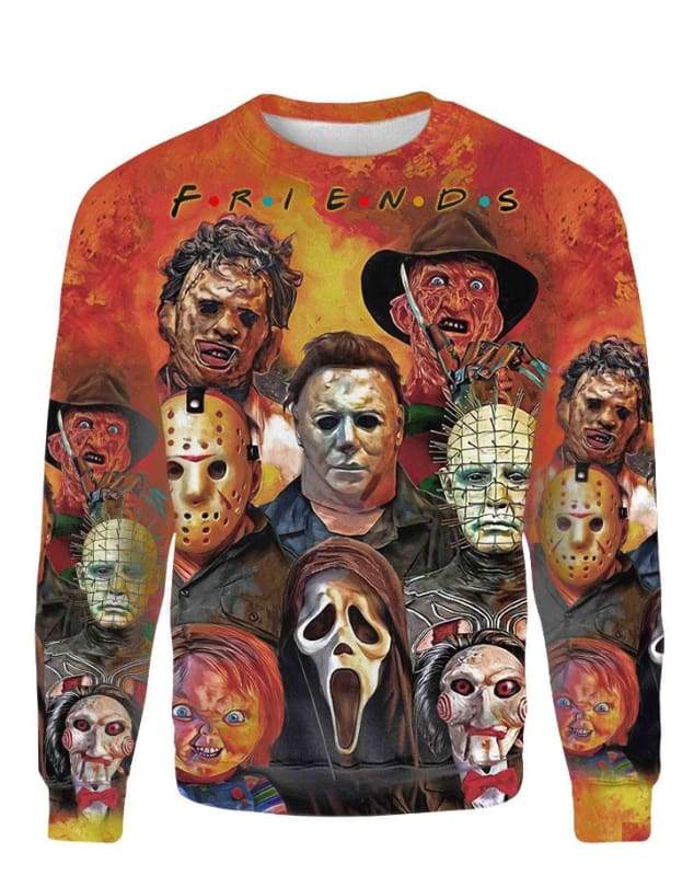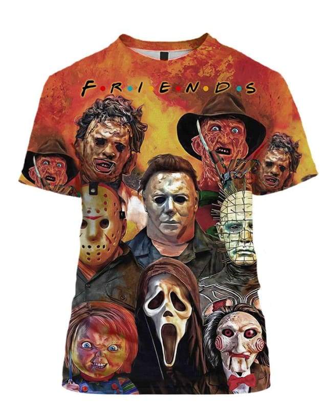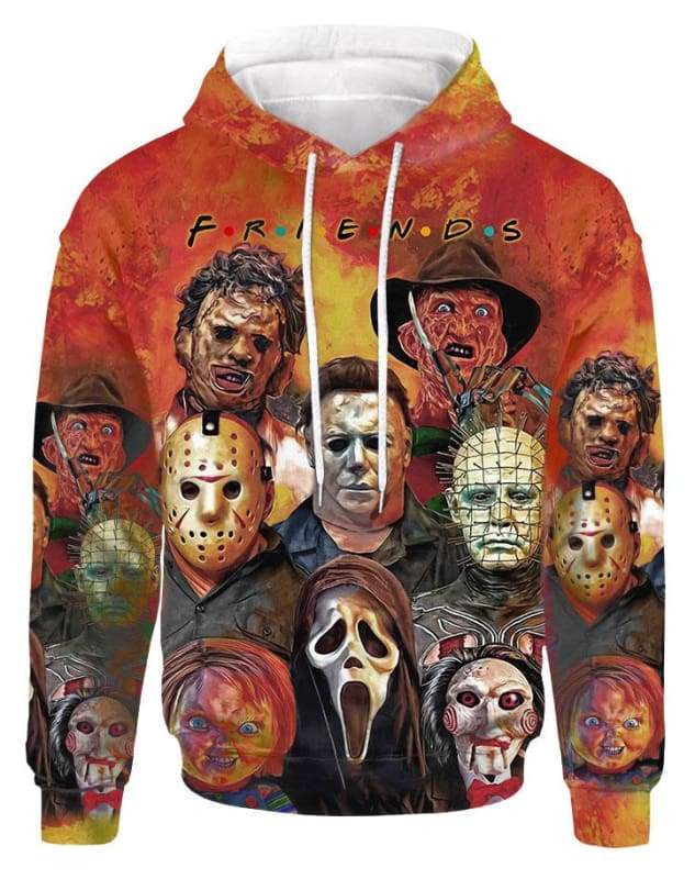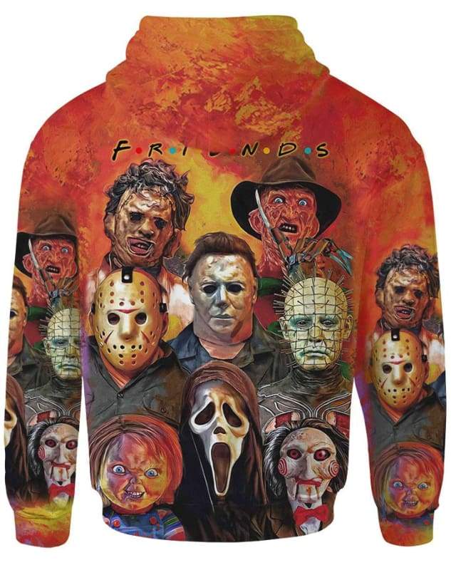 Horror Friends Halloween Characters all over print Hoodie T-shirt. Michael Myer. Freddy Krueger. Jason Voorhees. Pennywise. Pinhead. Ghostface
