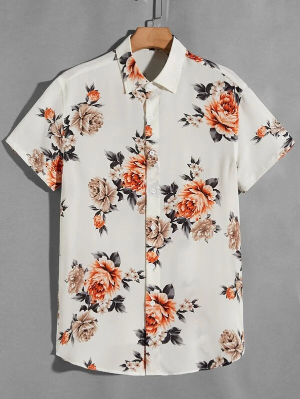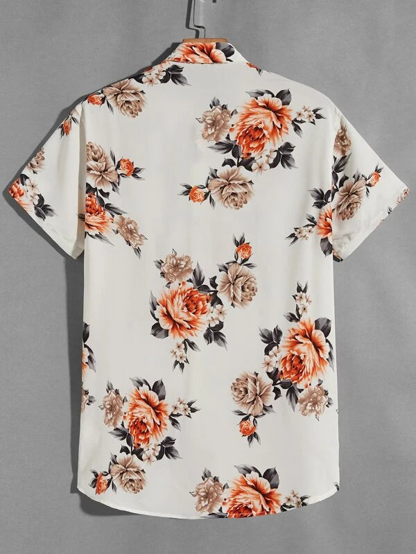 ROMWE Guys Tropical Floral Print Shirt