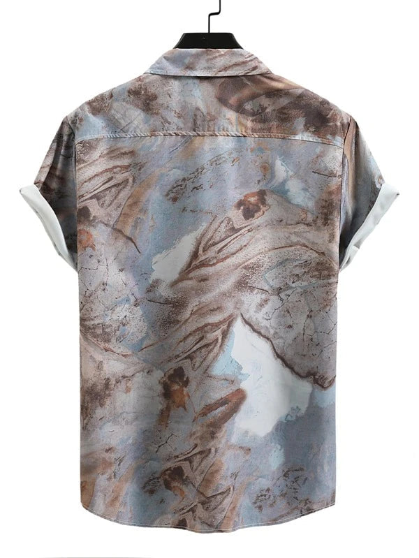 HomeButton Man Shirt Men Random Marble Print Shirt