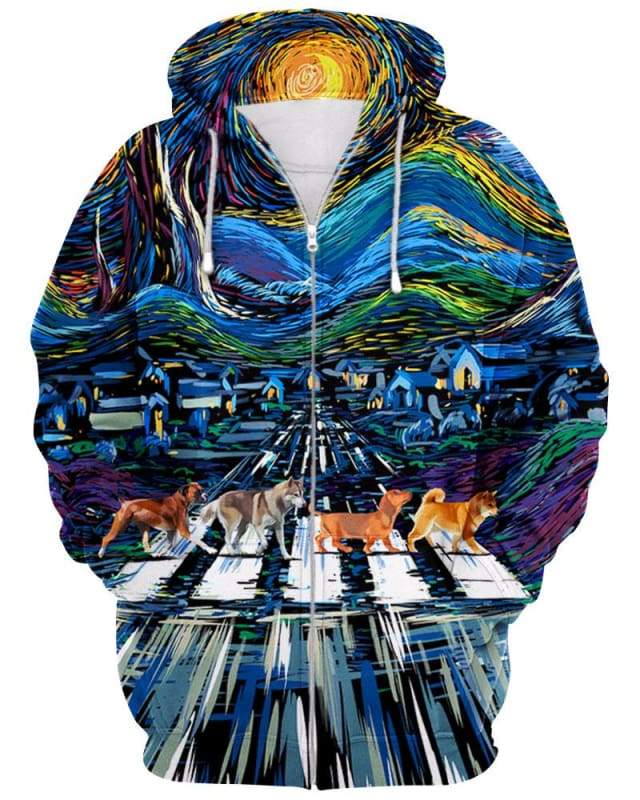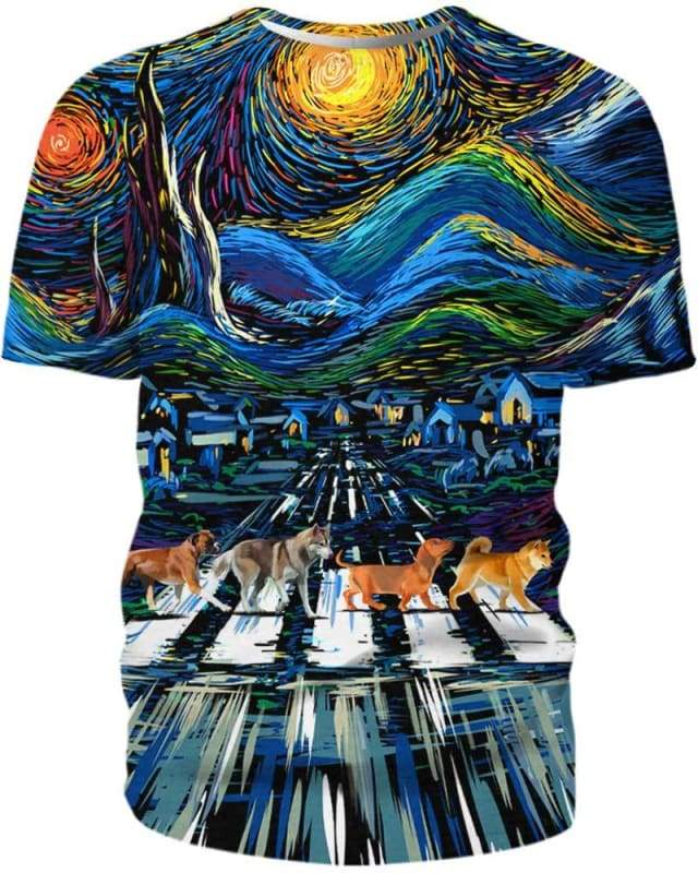 Stary Night  Dog 3D All-over Printed T-shirt Hoodie Sweater Tank.